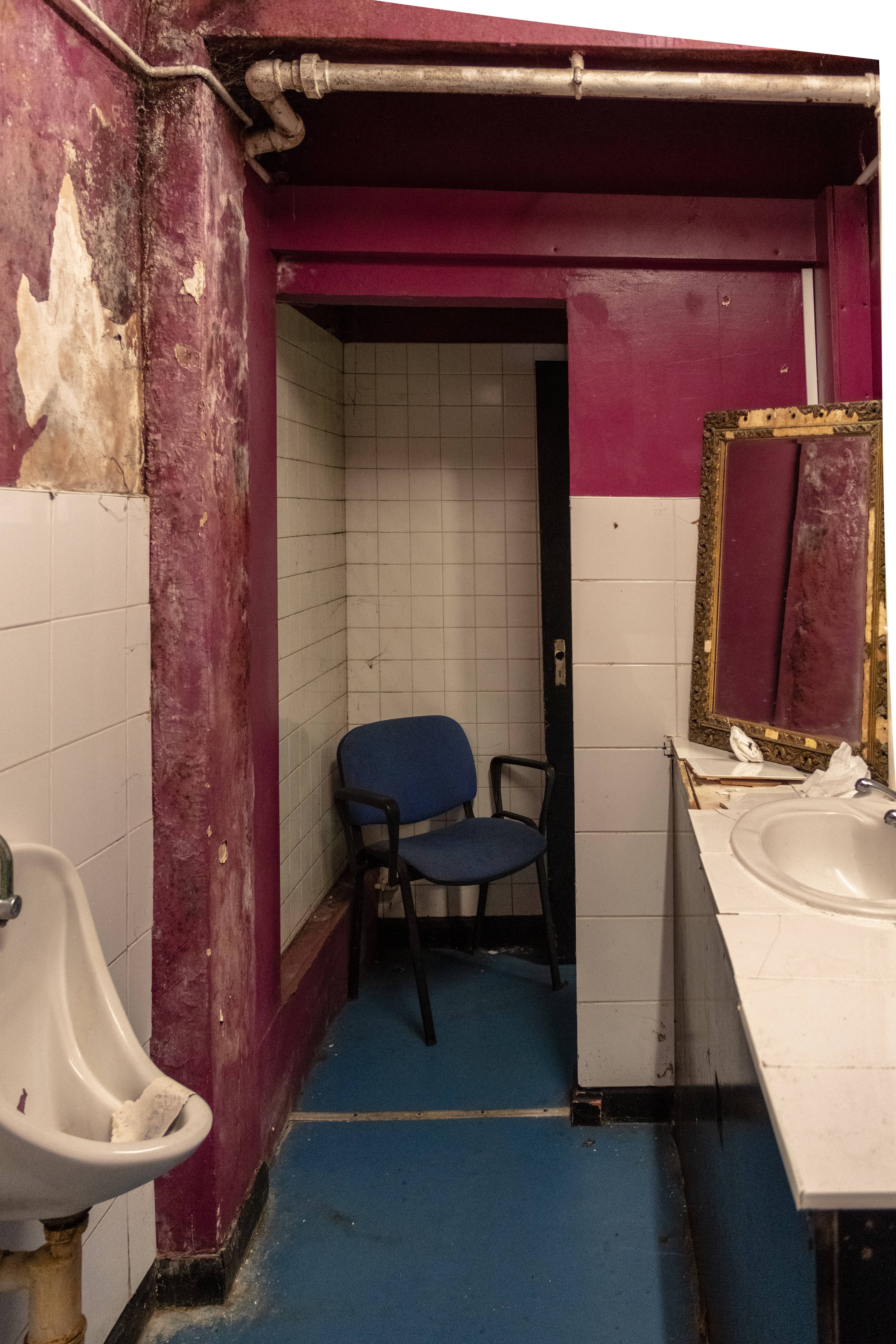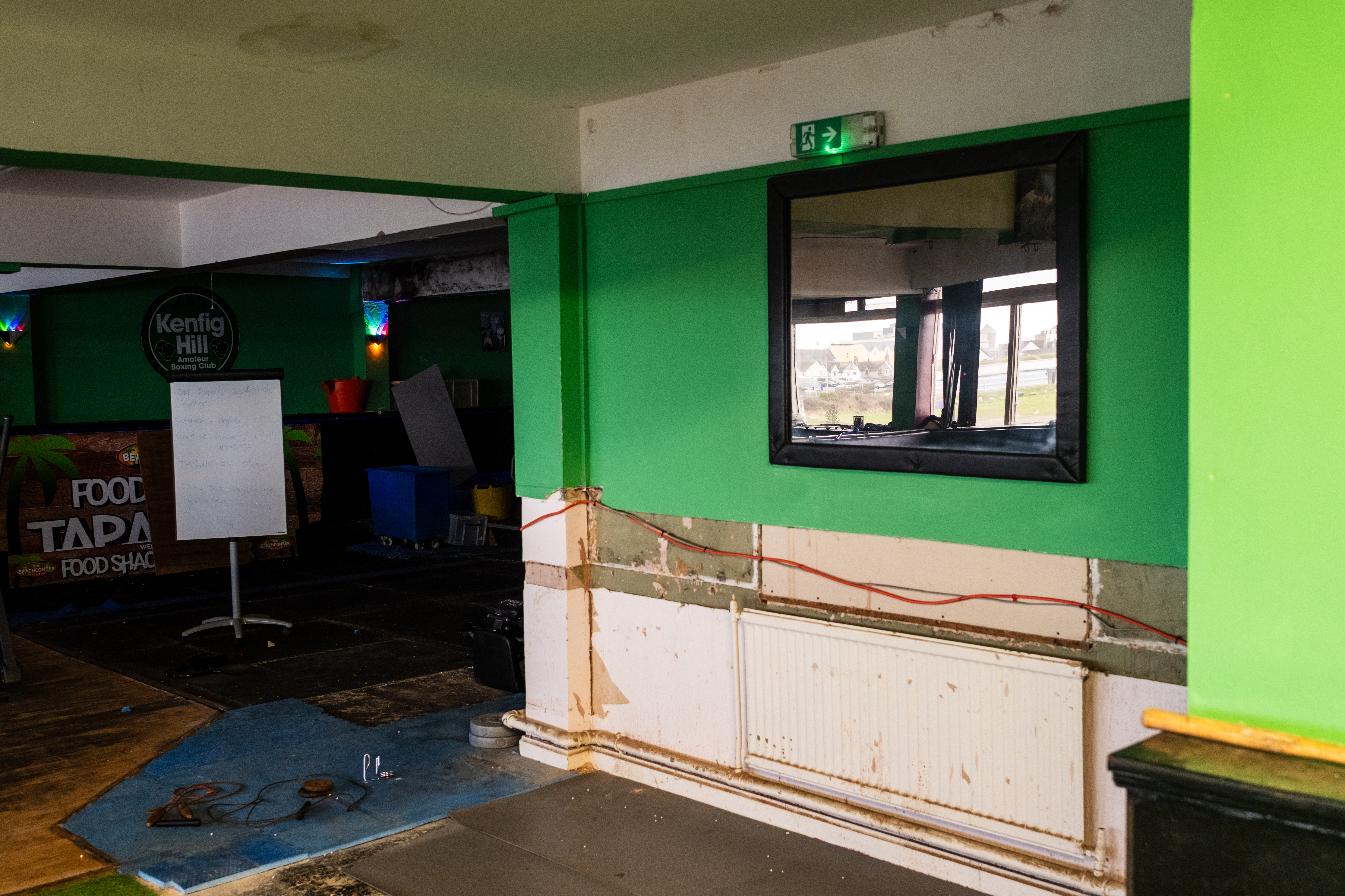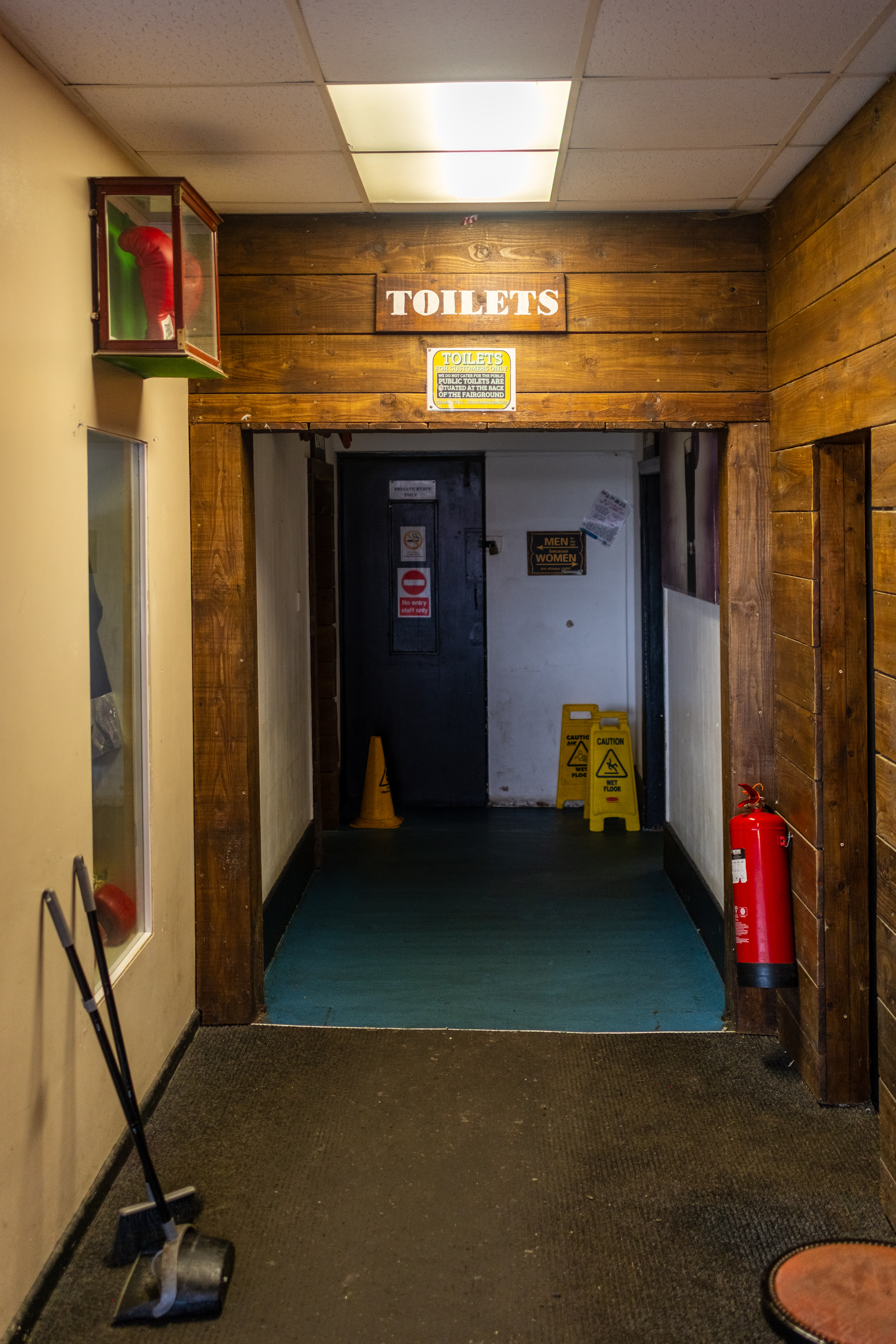 The Beachcomber has its own reputation and lore locally. It certainly wasn’t for everyone, but for many it has been, at least once, for them. It was great to be allowed inside, but even greater to explore the upstairs area — previously a nightclub space a decade ago, with evidence of other uses since. There is something powerful about seeing a place like this out of its context. The garish pink of the bar, the green of the carpet, the grubbiness of the doors. All would have been hidden by darkness and dancefloor lighting. There is nowhere to hide in the light of day.