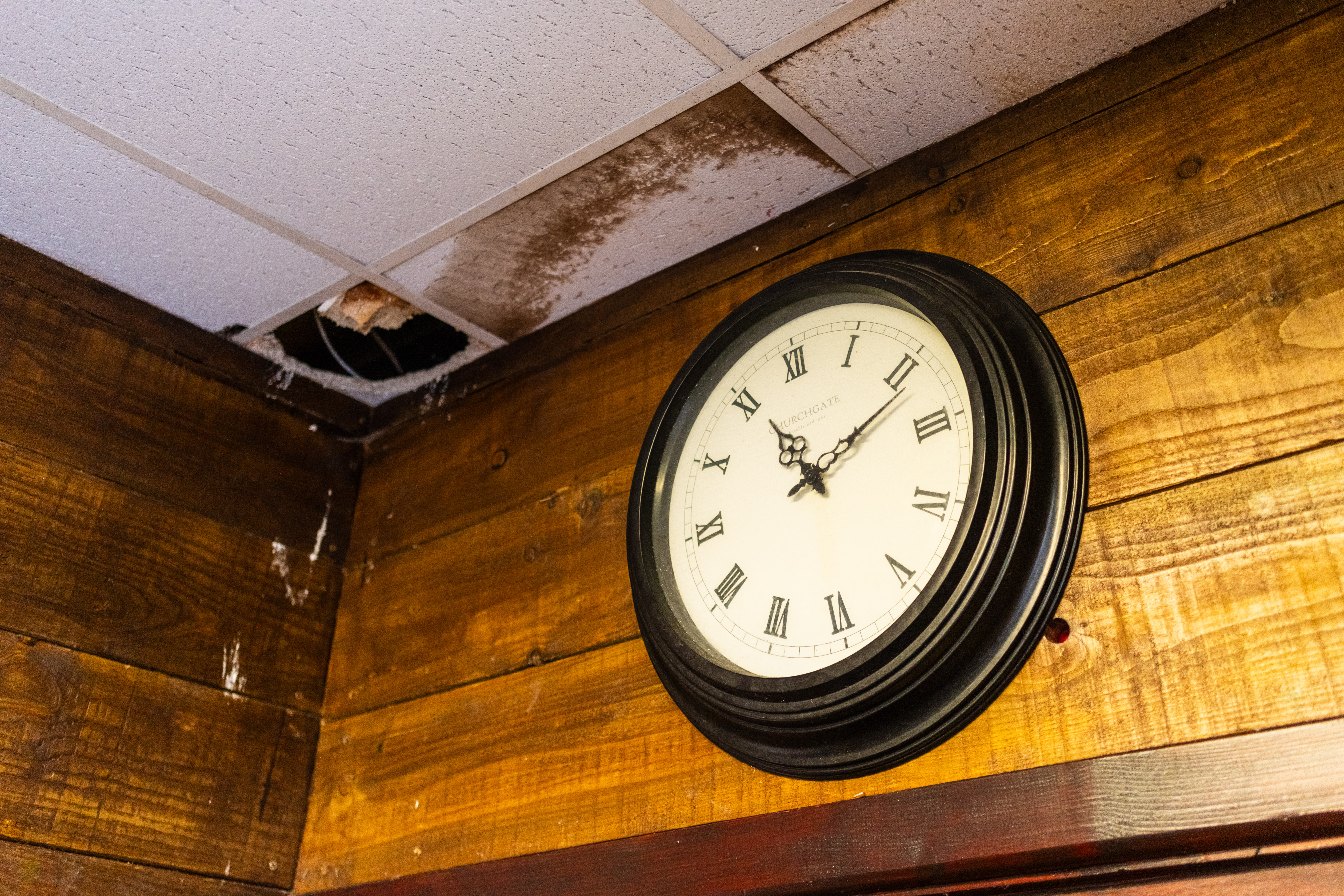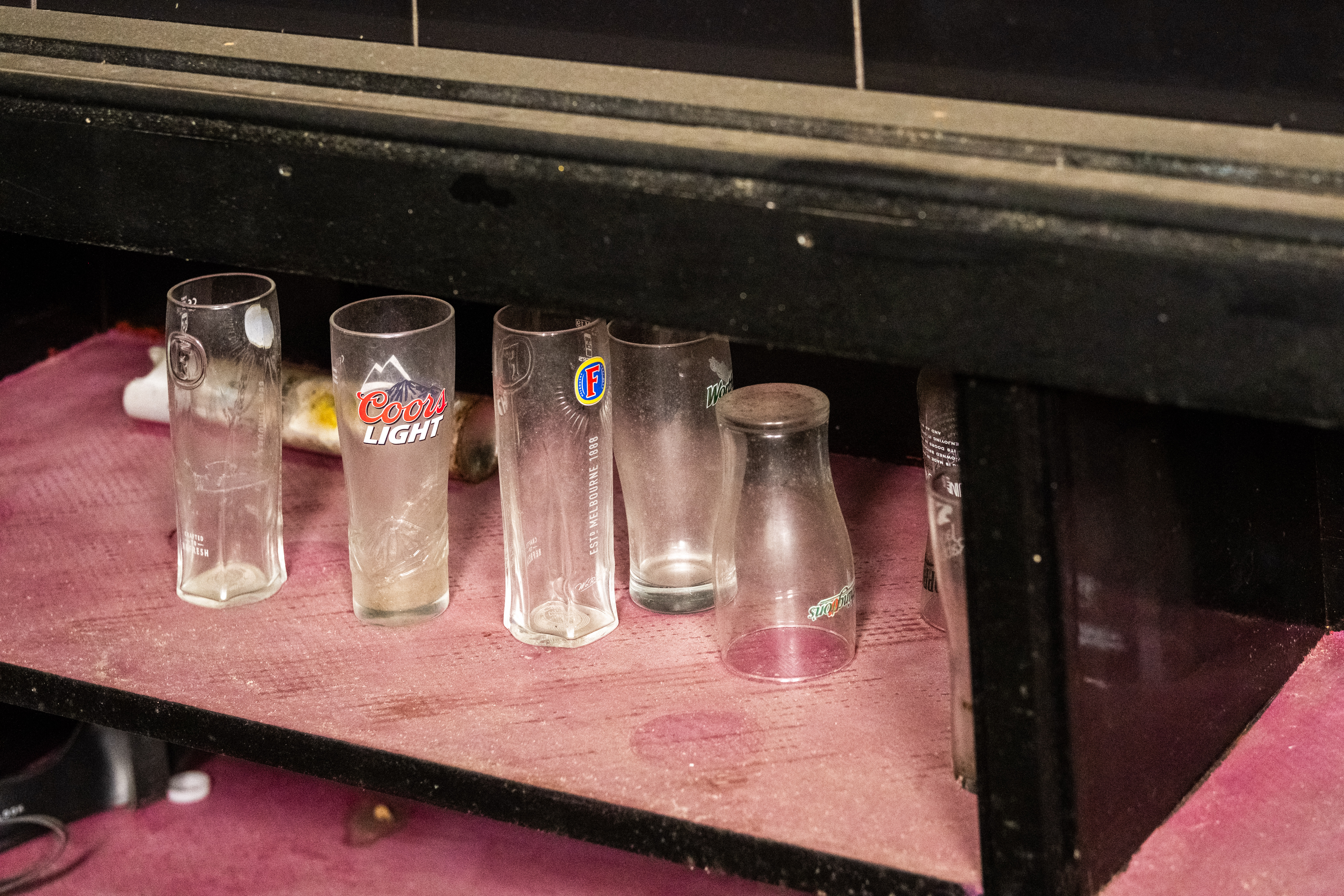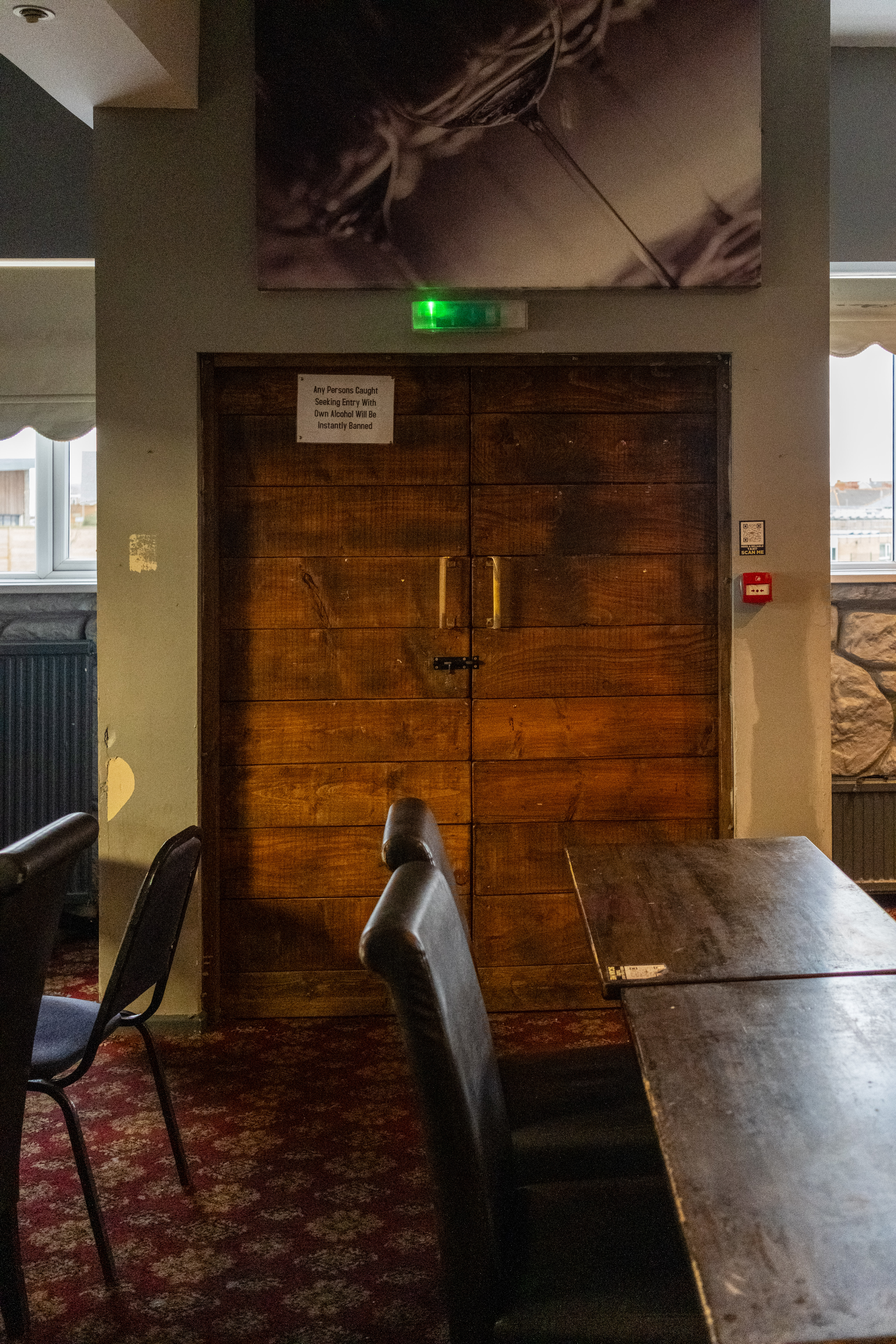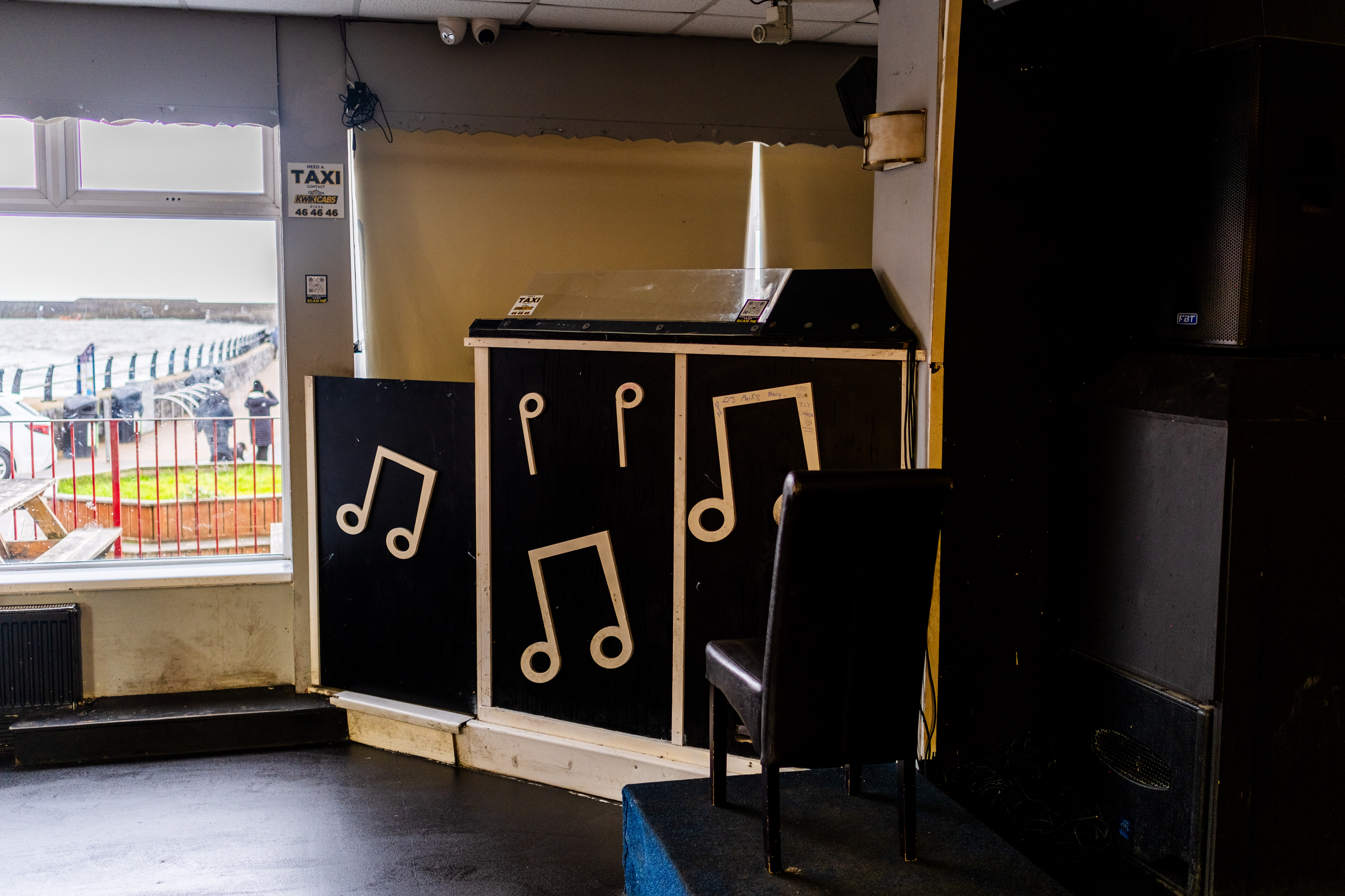 The Beachcomber has its own reputation and lore locally. It certainly wasn’t for everyone, but for many it has been, at least once, for them. It was great to be allowed inside, but even greater to explore the upstairs area — previously a nightclub space a decade ago, with evidence of other uses since. There is something powerful about seeing a place like this out of its context. The garish pink of the bar, the green of the carpet, the grubbiness of the doors. All would have been hidden by darkness and dancefloor lighting. There is nowhere to hide in the light of day.