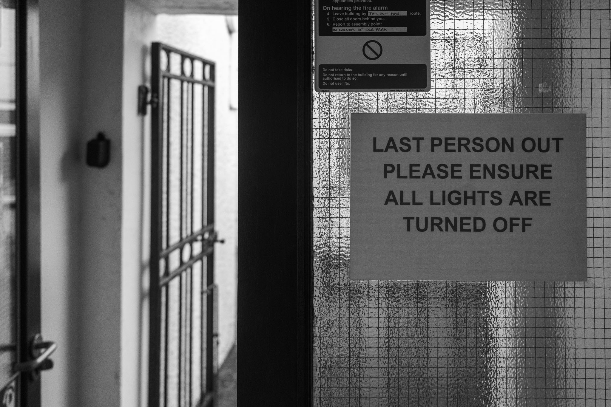 This image, like a lot that I take around wales, is a site that thousands of people have probably walked past every day. There’s a story already here – what’s the chair for (fag breaks?), how long has it been there? I bet there are marks where feet have rested for so long. The ramp, one of my favourite details anywhere, the ancient “quick fix”. The cracked tiles, the peeled lettering, the ironically burnt looking fireman’s switch.